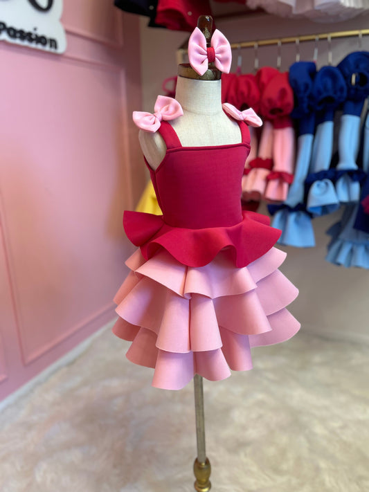 Pink and Baby Blue Big Bow Girl Twirl Dress