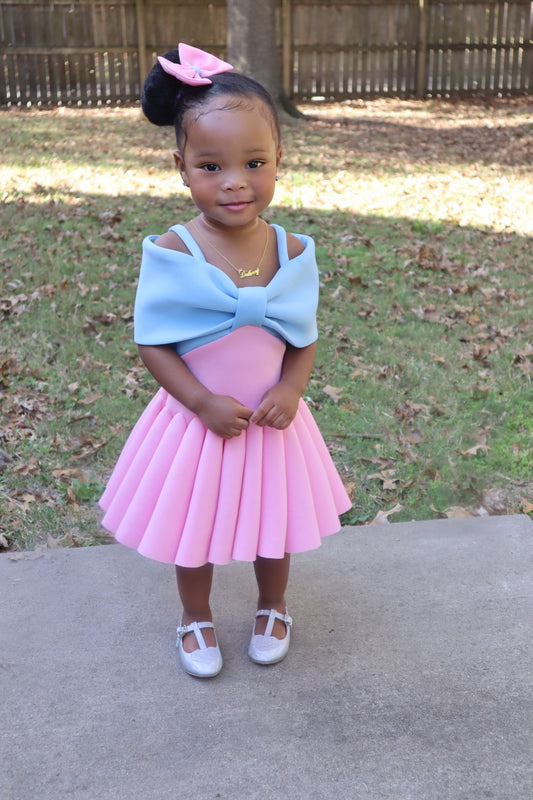 Pink and Baby Blue Big Bow Girl Twirl Dress