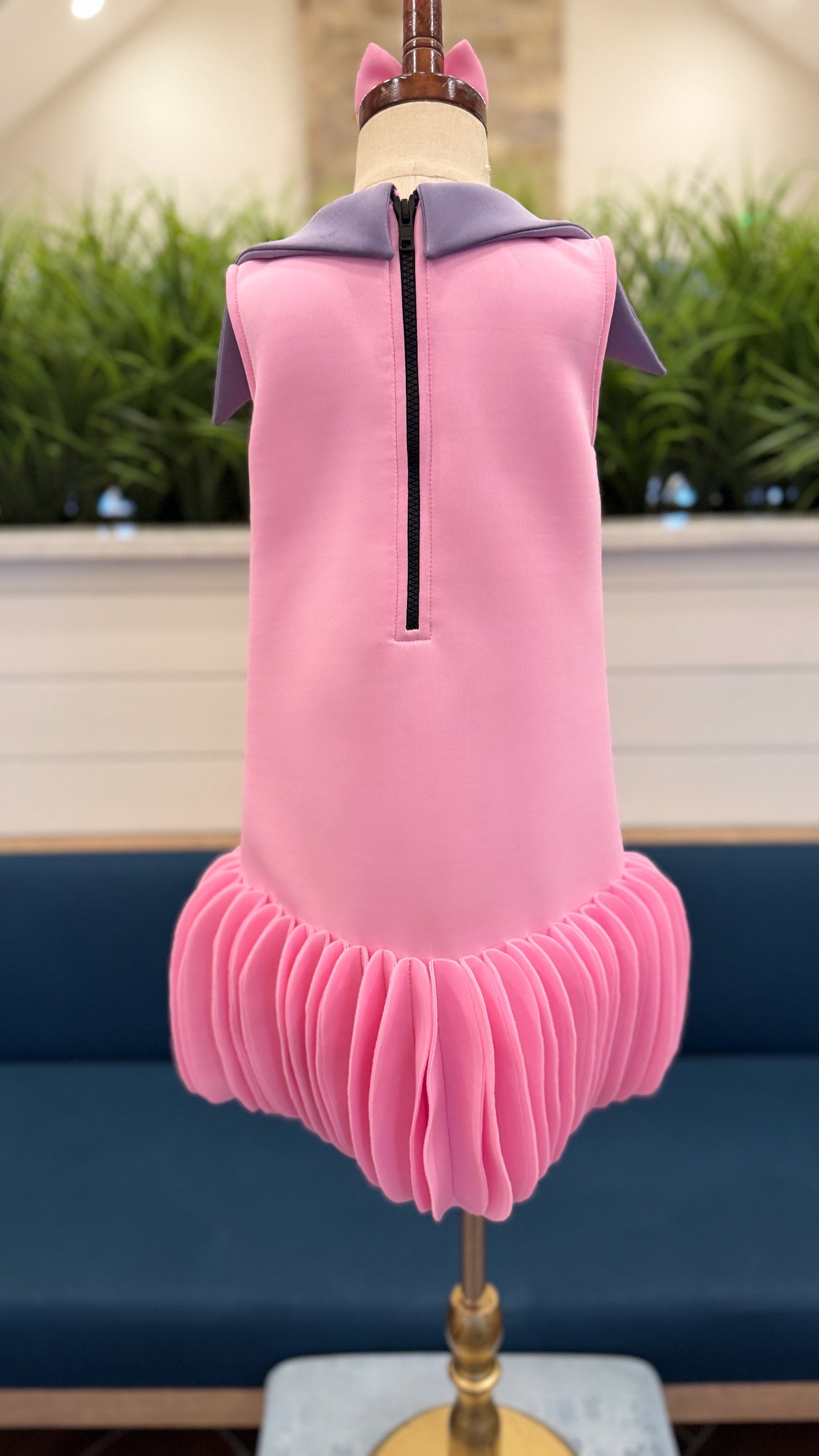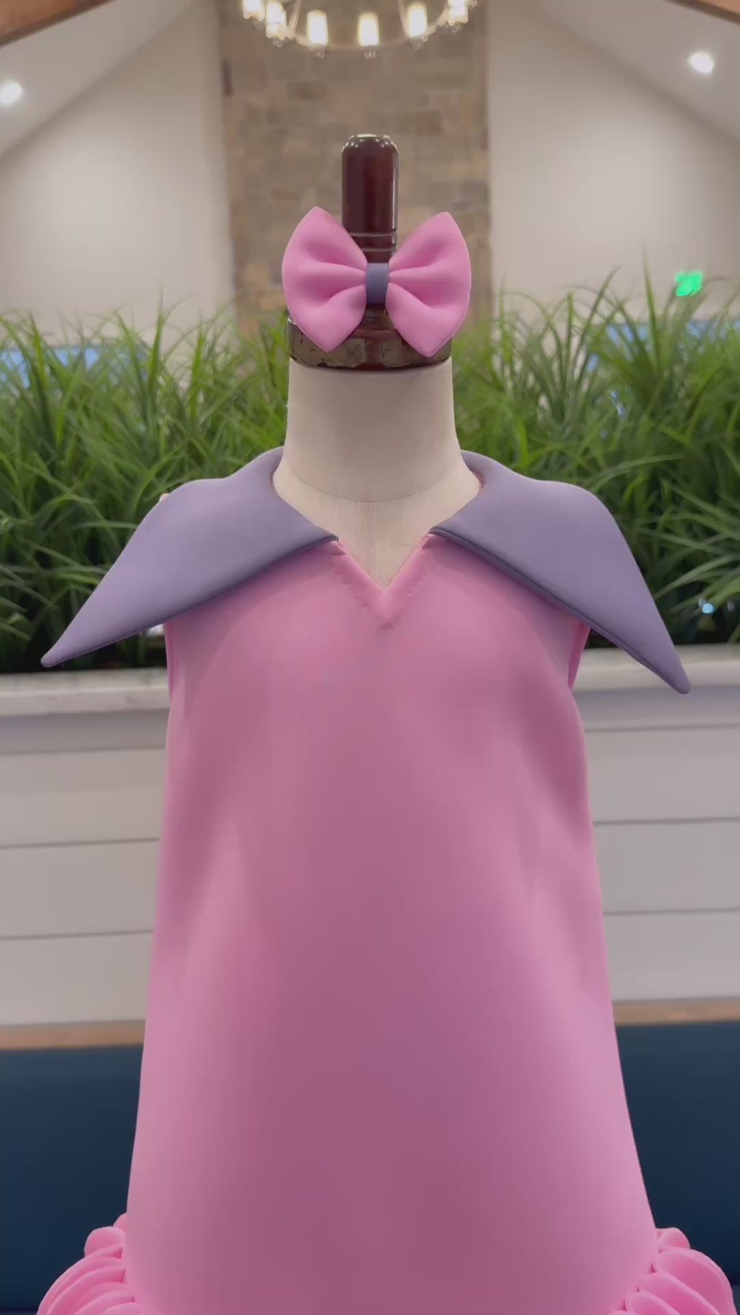 A modern twist on classic charm! This soft blush pink shift dress stuns with its sculpted pleated bubble hem, adding volume and movement for a picture-perfect look. The bold lavender collar gives a sophisticated contrast, making it effortlessly stylish. Designed for comfort and elegance, this dress also comes with a matching hair bow for the ultimate polished finish. Perfect for tea parties, birthdays, and stylish little moments!