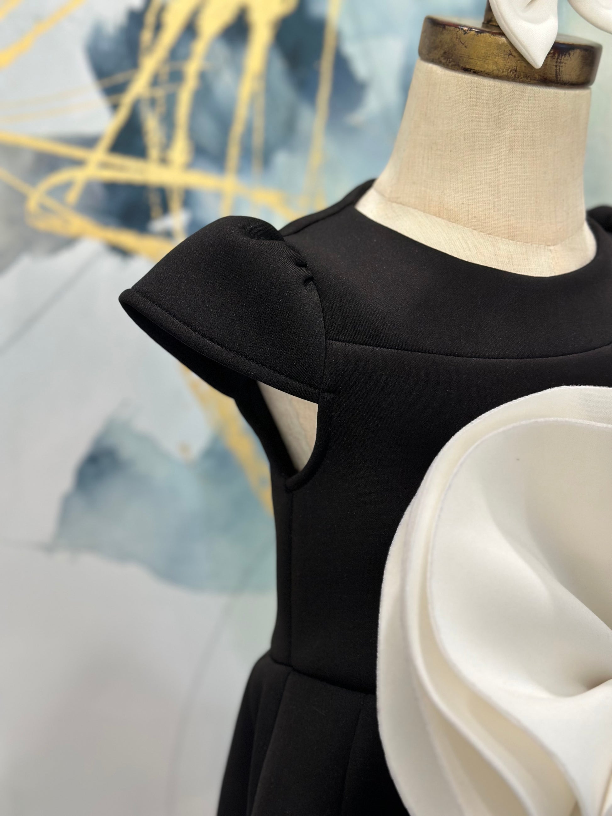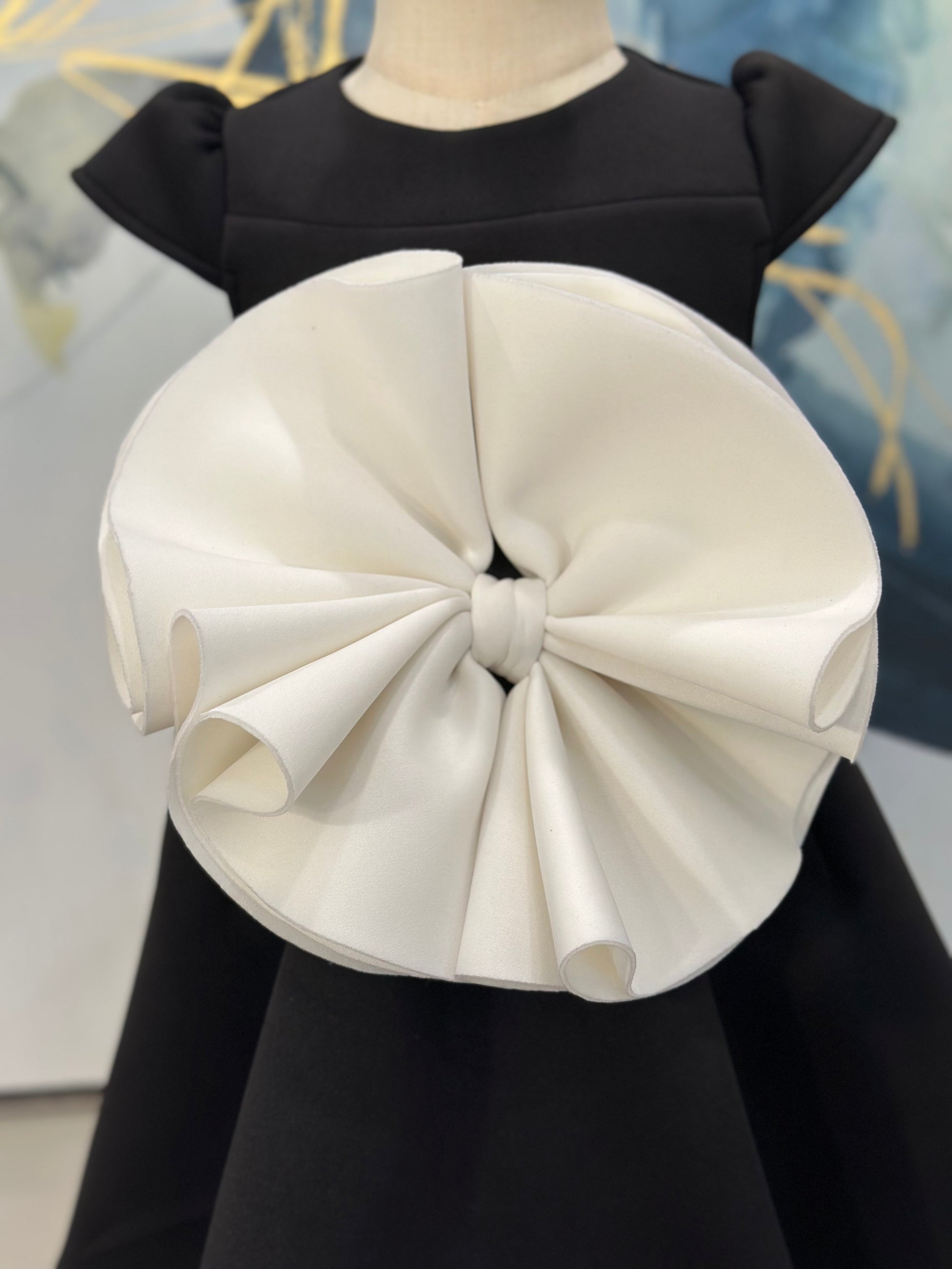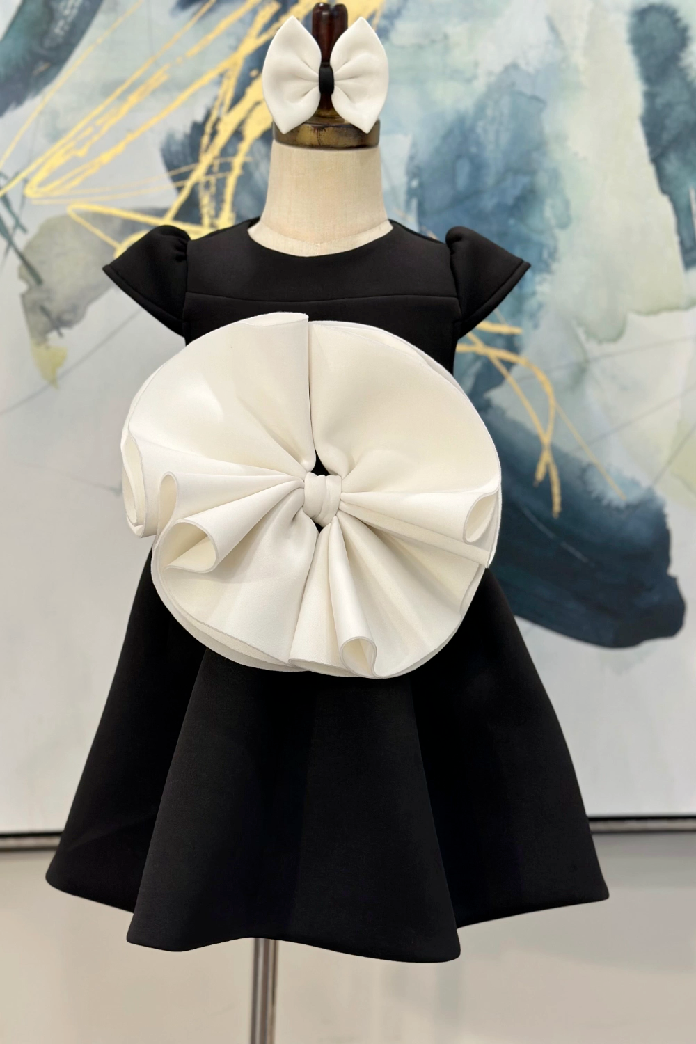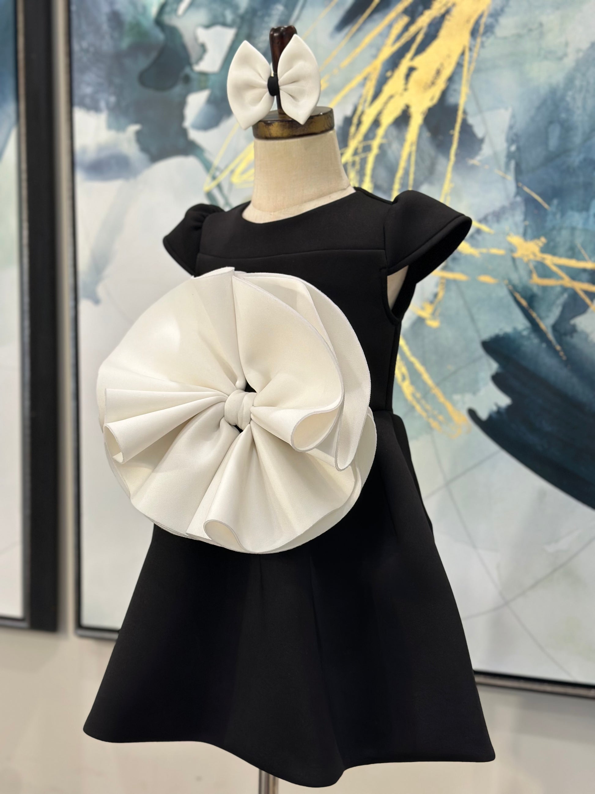 Our Blossom Baby Doll Dress is the star of the show at any event! It's crafted in a classy black and sports a cute white floral bow front and center. This dress has a sweet O-neck and playful cap sleeves for a soft, snug fit. The skirt gently cascades into a flirty flared shape that falls to a midi length, making it super flattering. Complete your adorable ensemble with the matching hair bow for the perfect finishing touch!